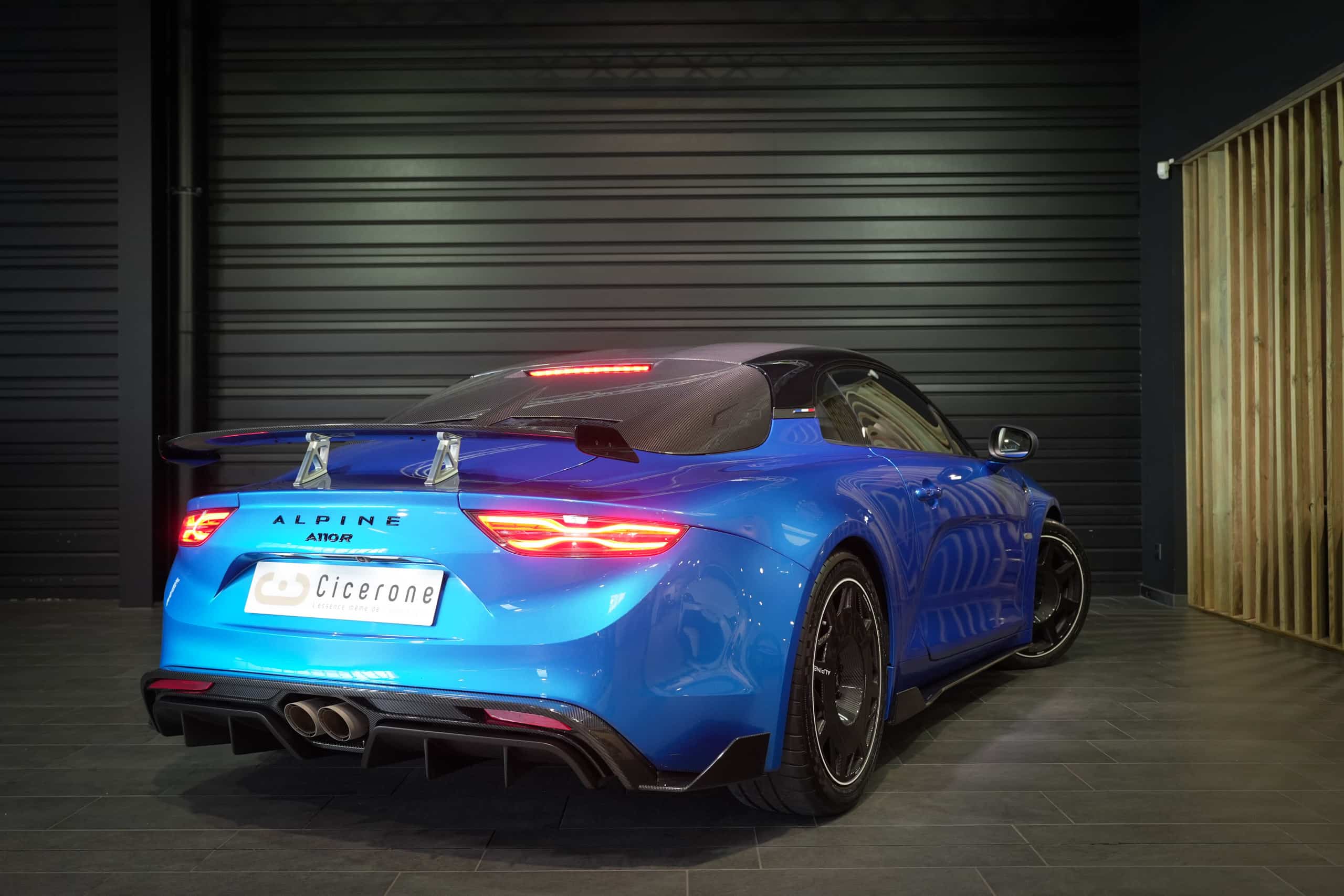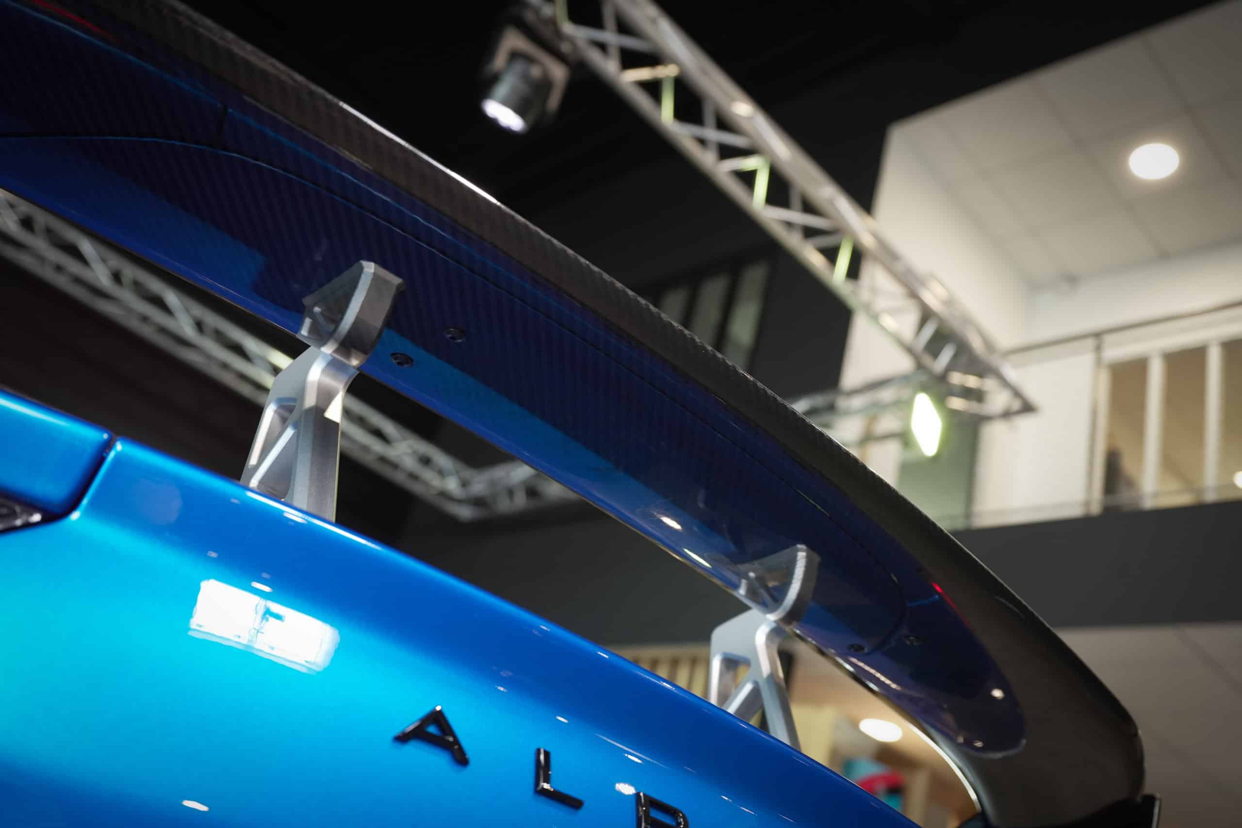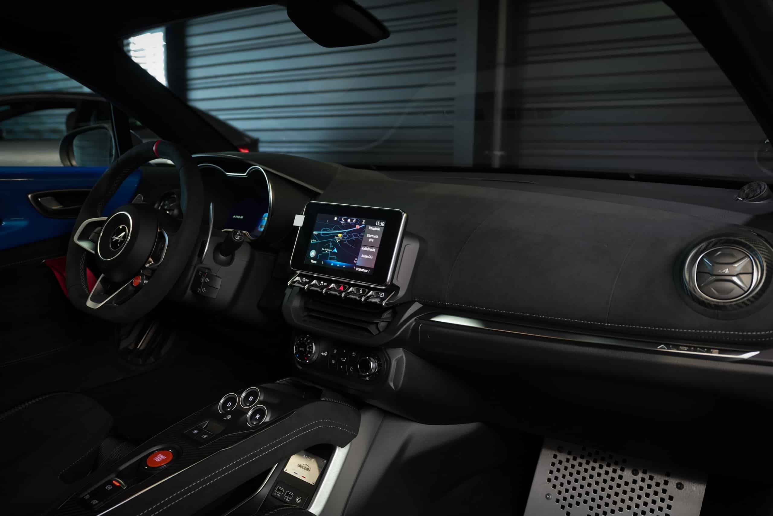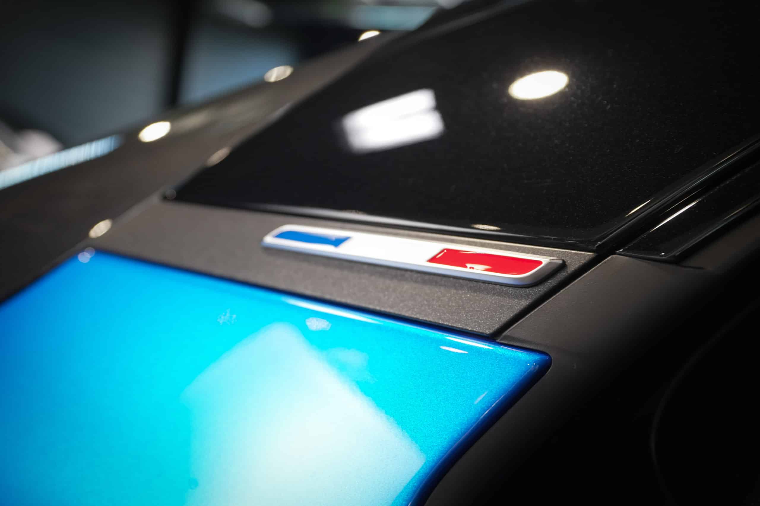 Présentée dans la très désirable teinte Bleu Alpine, cette A110 R incarne la vision la plus radicale et aboutie du modèle : châssis allégé spécifique, carrosserie largement en carbone, suspensions sport réglables, freinage Brembo, pneus Michelin Cup 2 et échappement sport titane. Les sièges baquets carbone Sabelt avec harnais six points soulignent son ADN résolument tourné vers la performance.