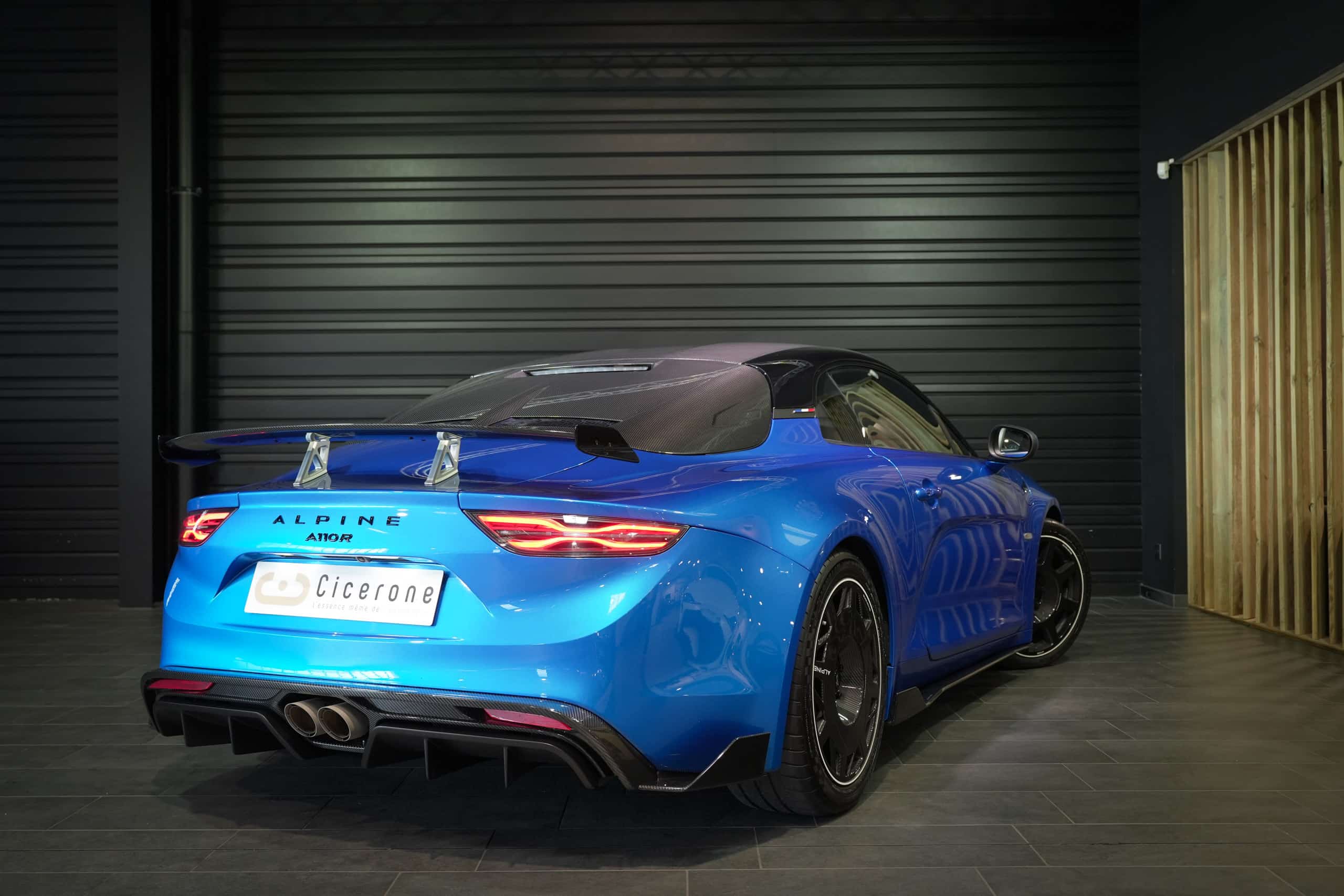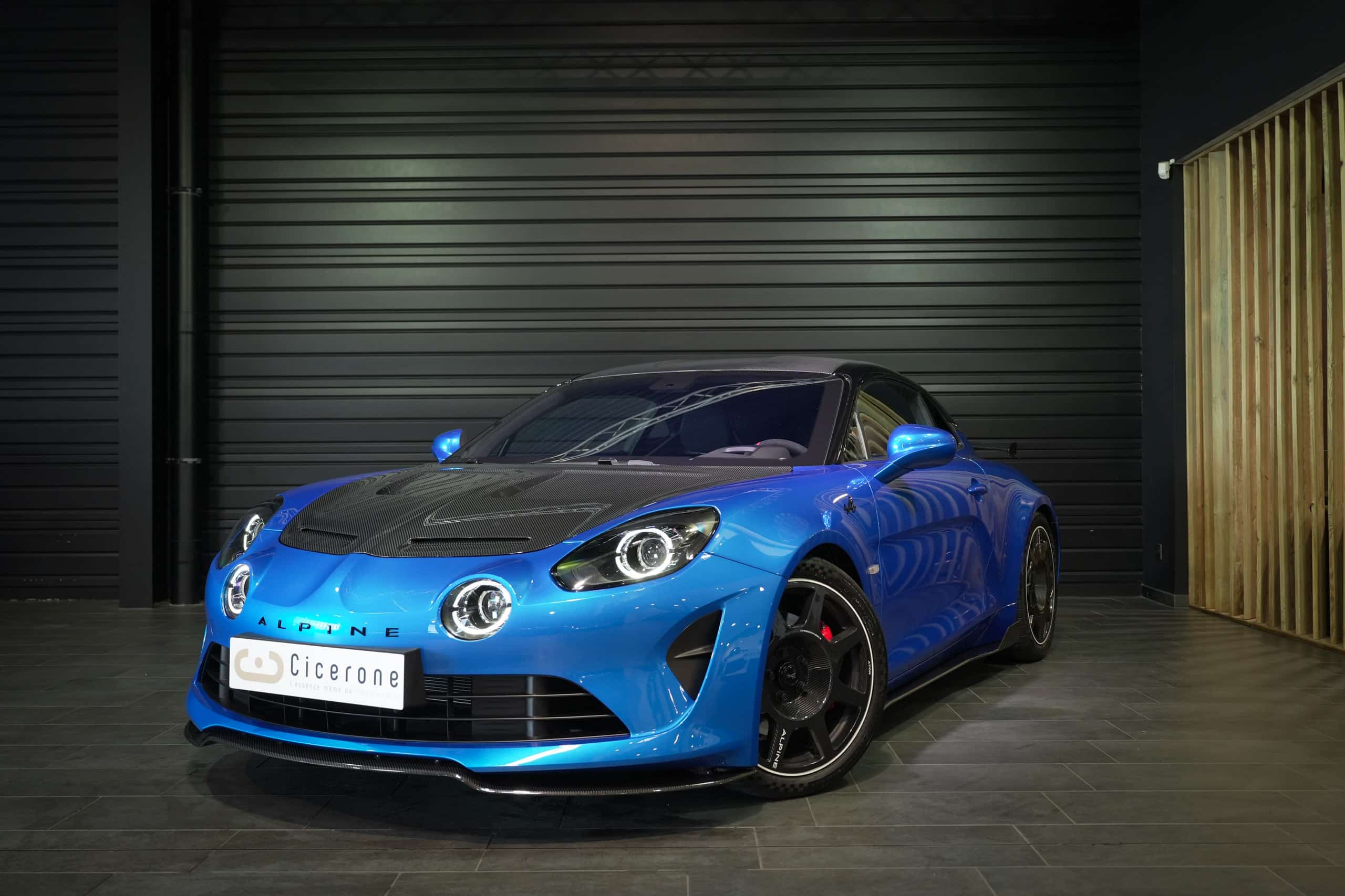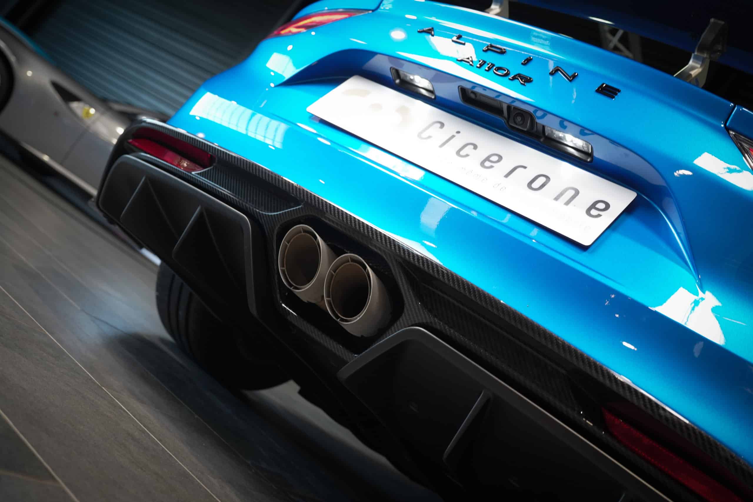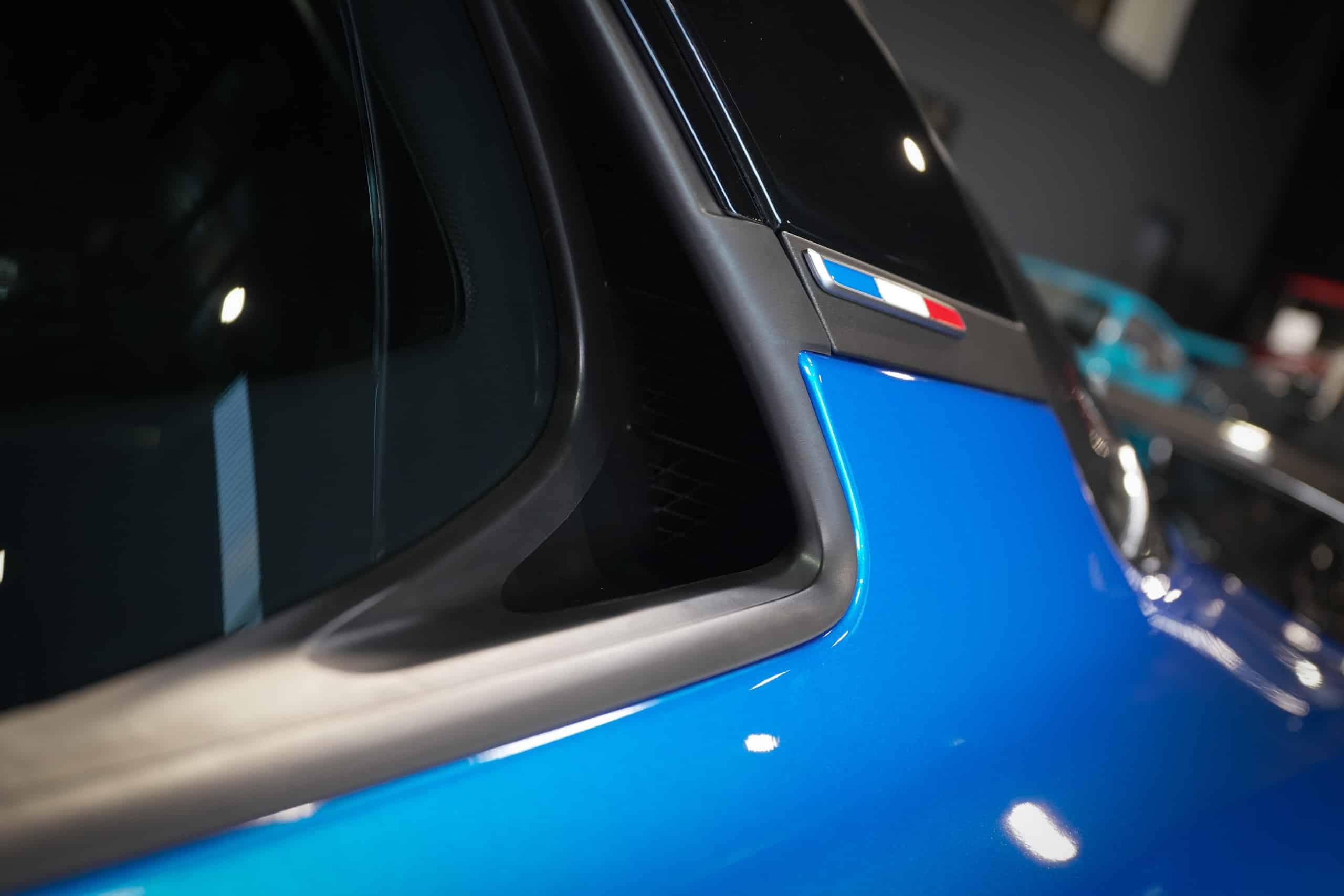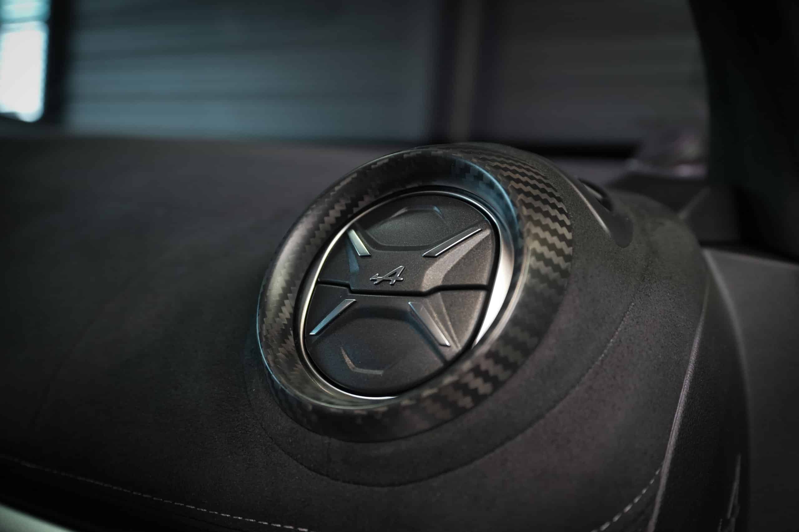 Présentée dans la très désirable teinte Bleu Alpine, cette A110 R incarne la vision la plus radicale et aboutie du modèle : châssis allégé spécifique, carrosserie largement en carbone, suspensions sport réglables, freinage Brembo, pneus Michelin Cup 2 et échappement sport titane. Les sièges baquets carbone Sabelt avec harnais six points soulignent son ADN résolument tourné vers la performance.