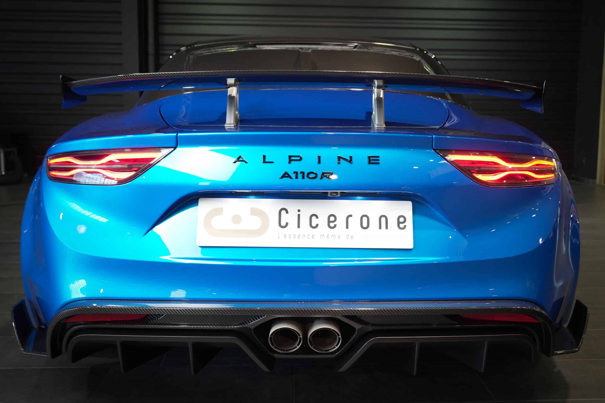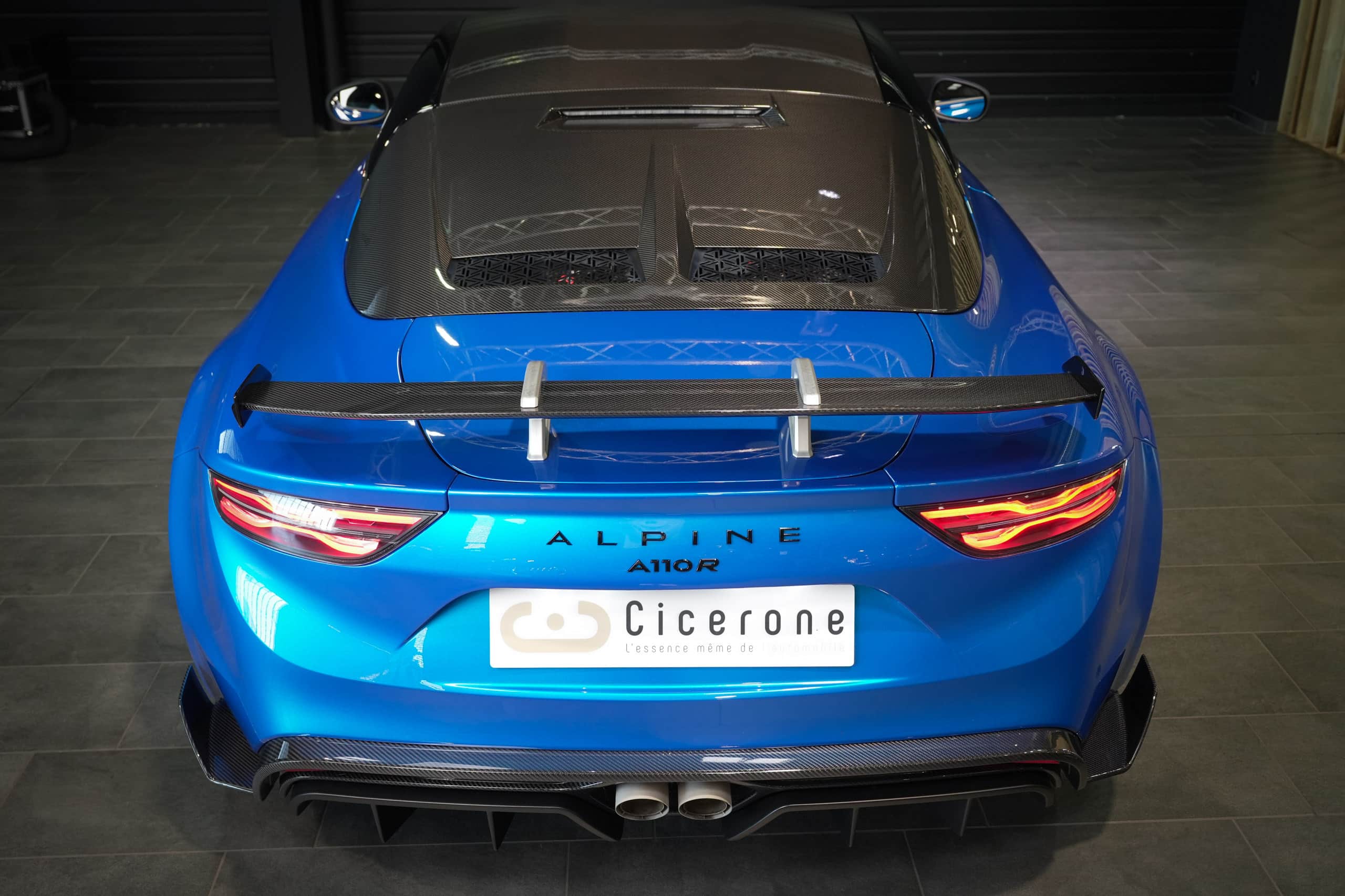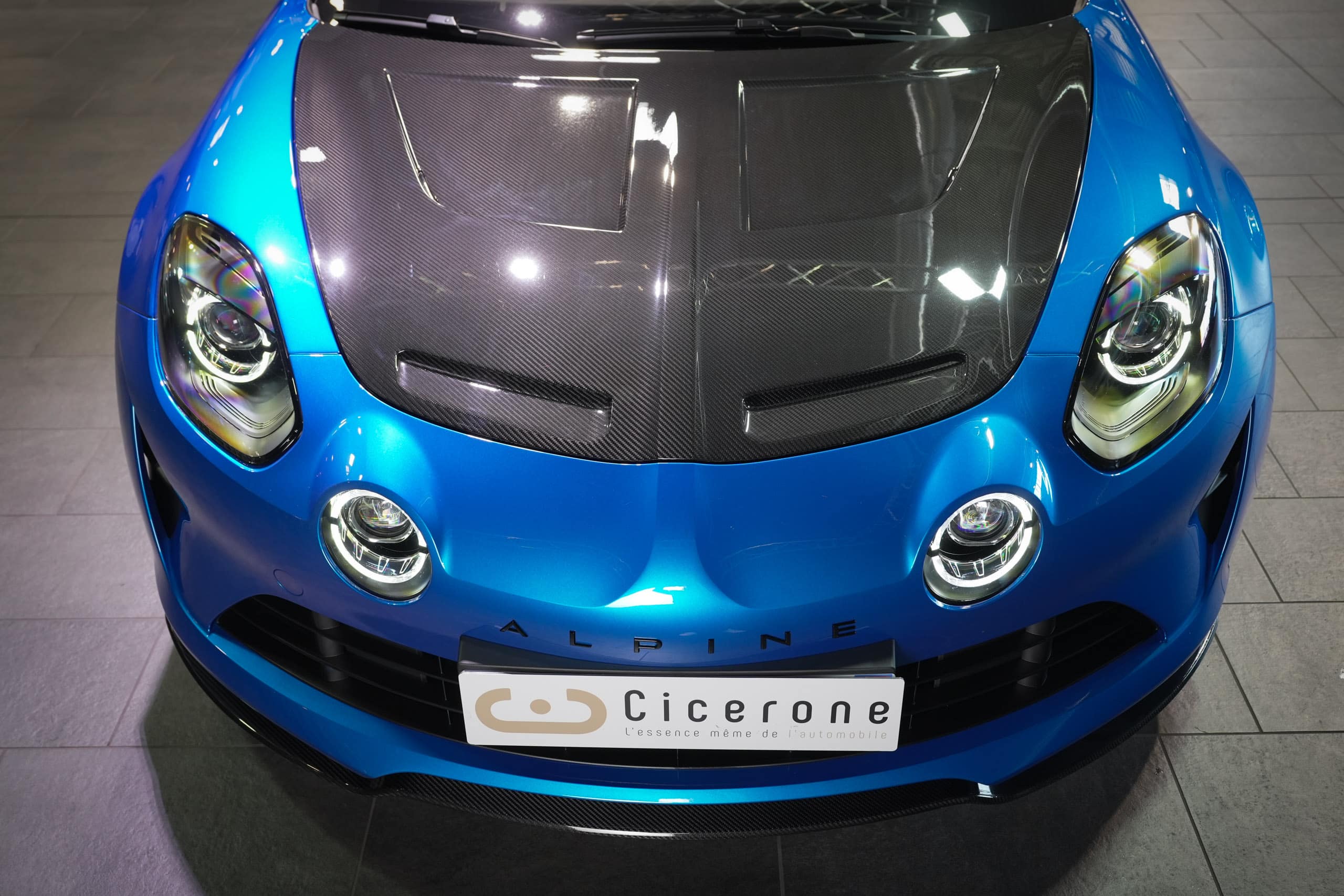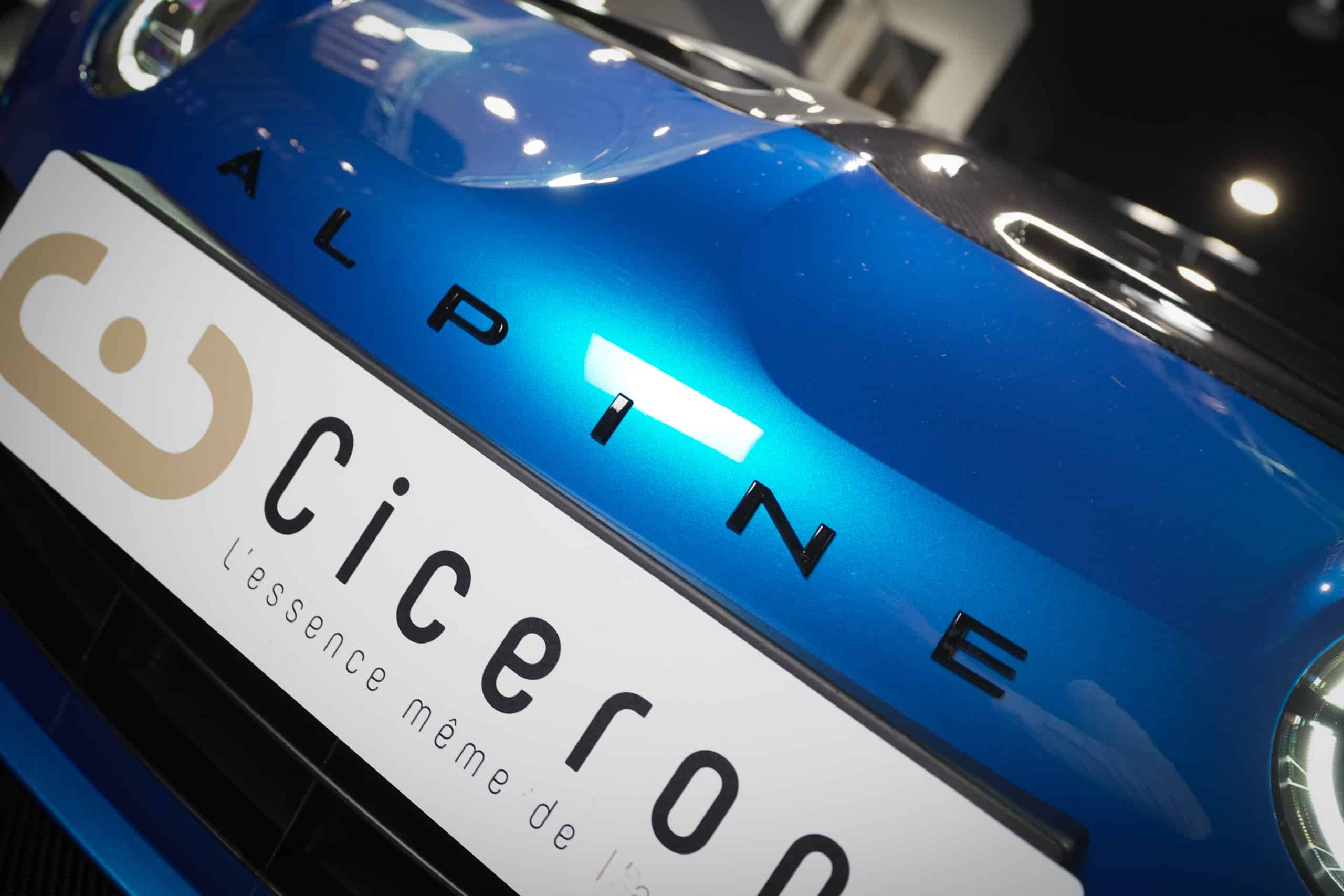 Présentée dans la très désirable teinte Bleu Alpine, cette A110 R incarne la vision la plus radicale et aboutie du modèle : châssis allégé spécifique, carrosserie largement en carbone, suspensions sport réglables, freinage Brembo, pneus Michelin Cup 2 et échappement sport titane. Les sièges baquets carbone Sabelt avec harnais six points soulignent son ADN résolument tourné vers la performance.