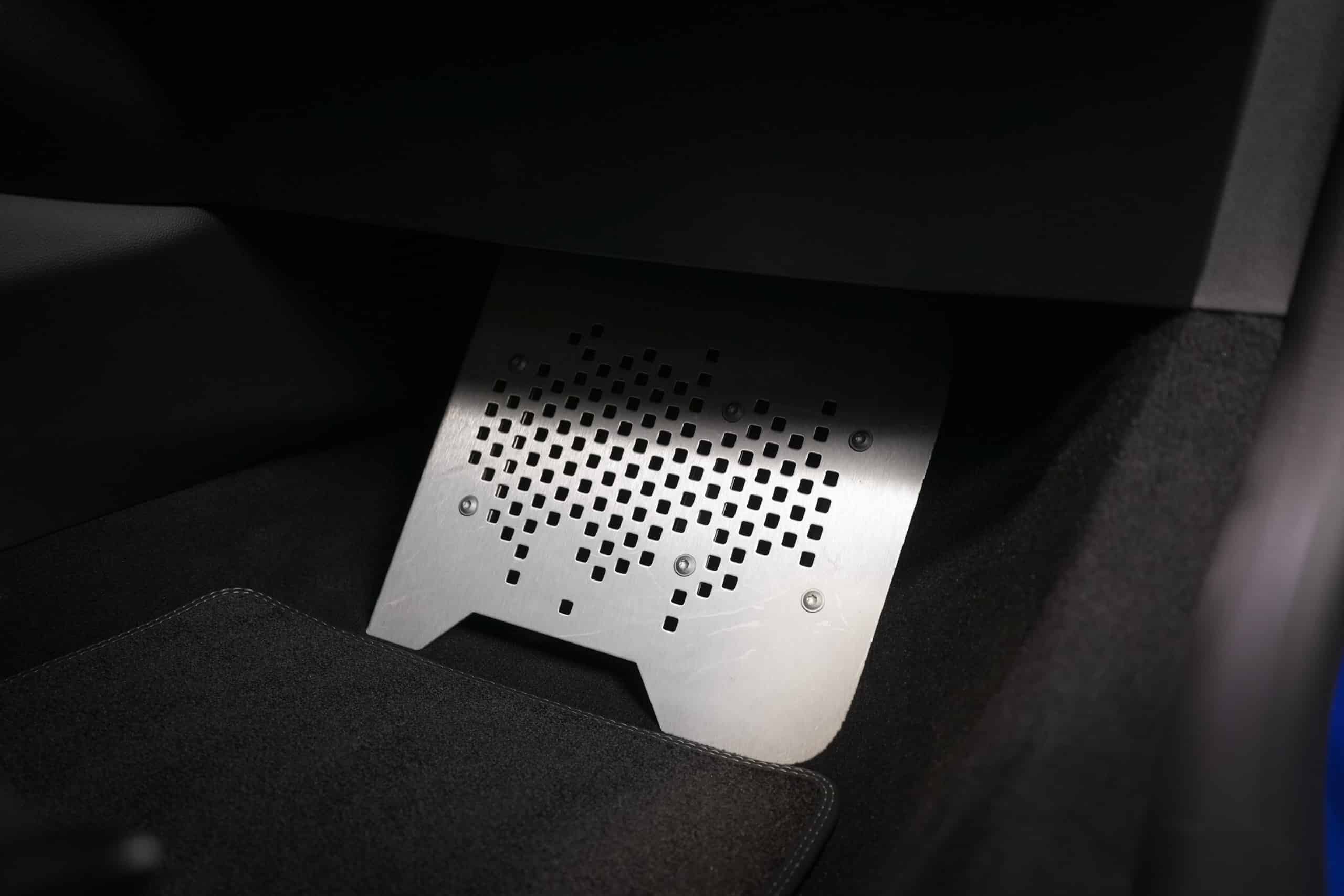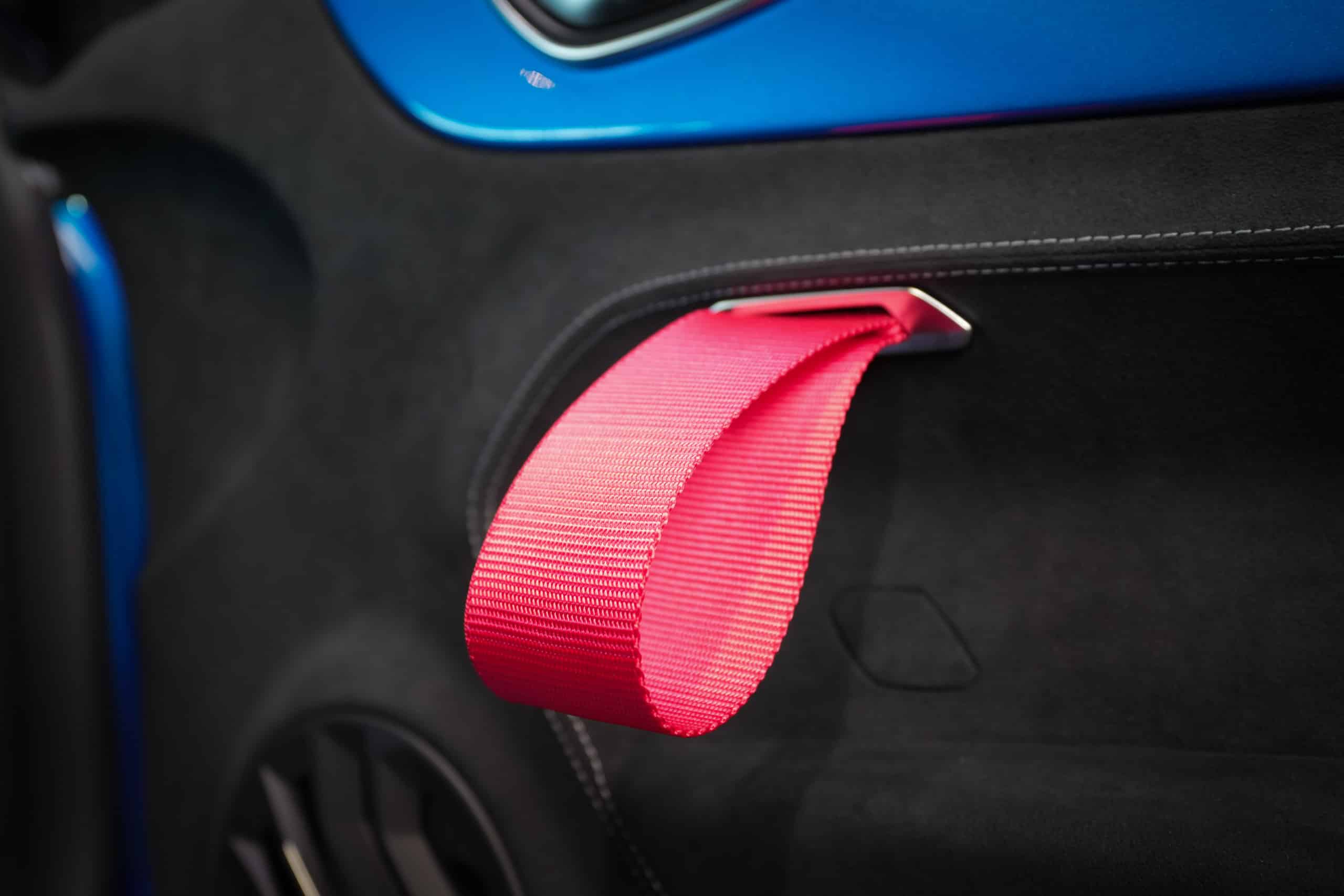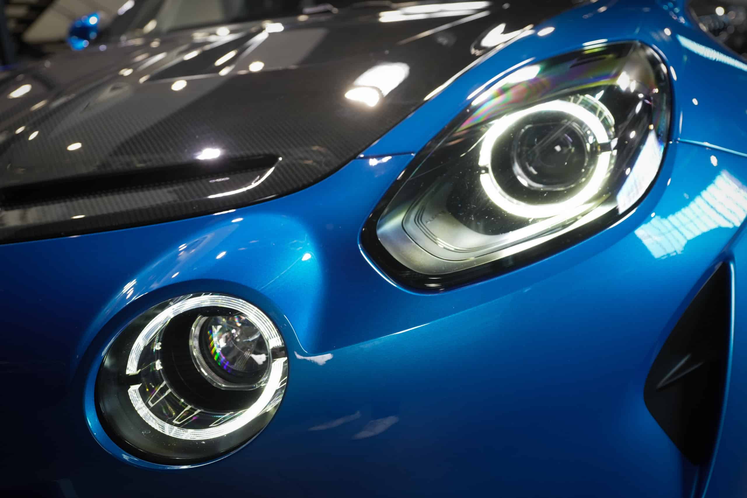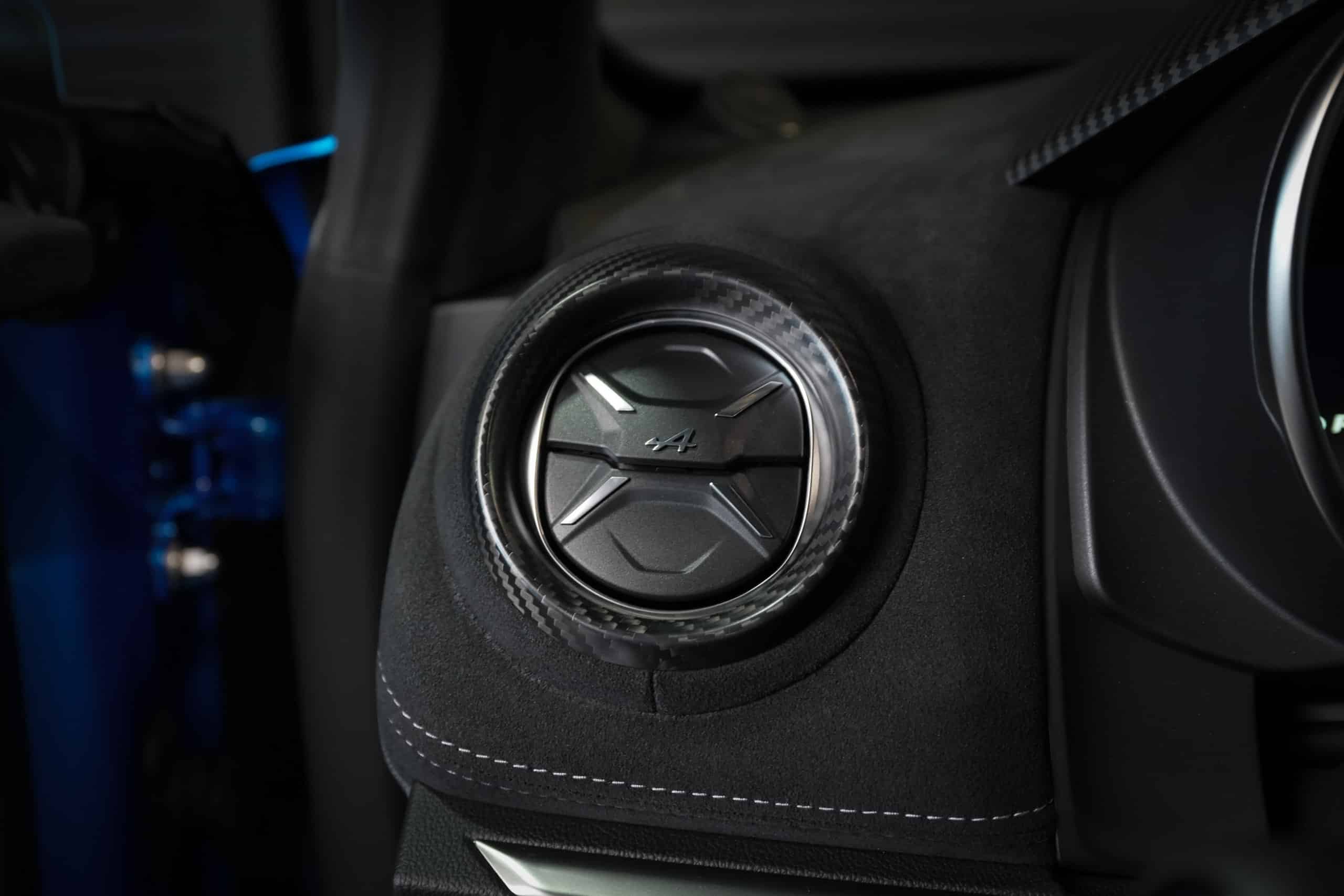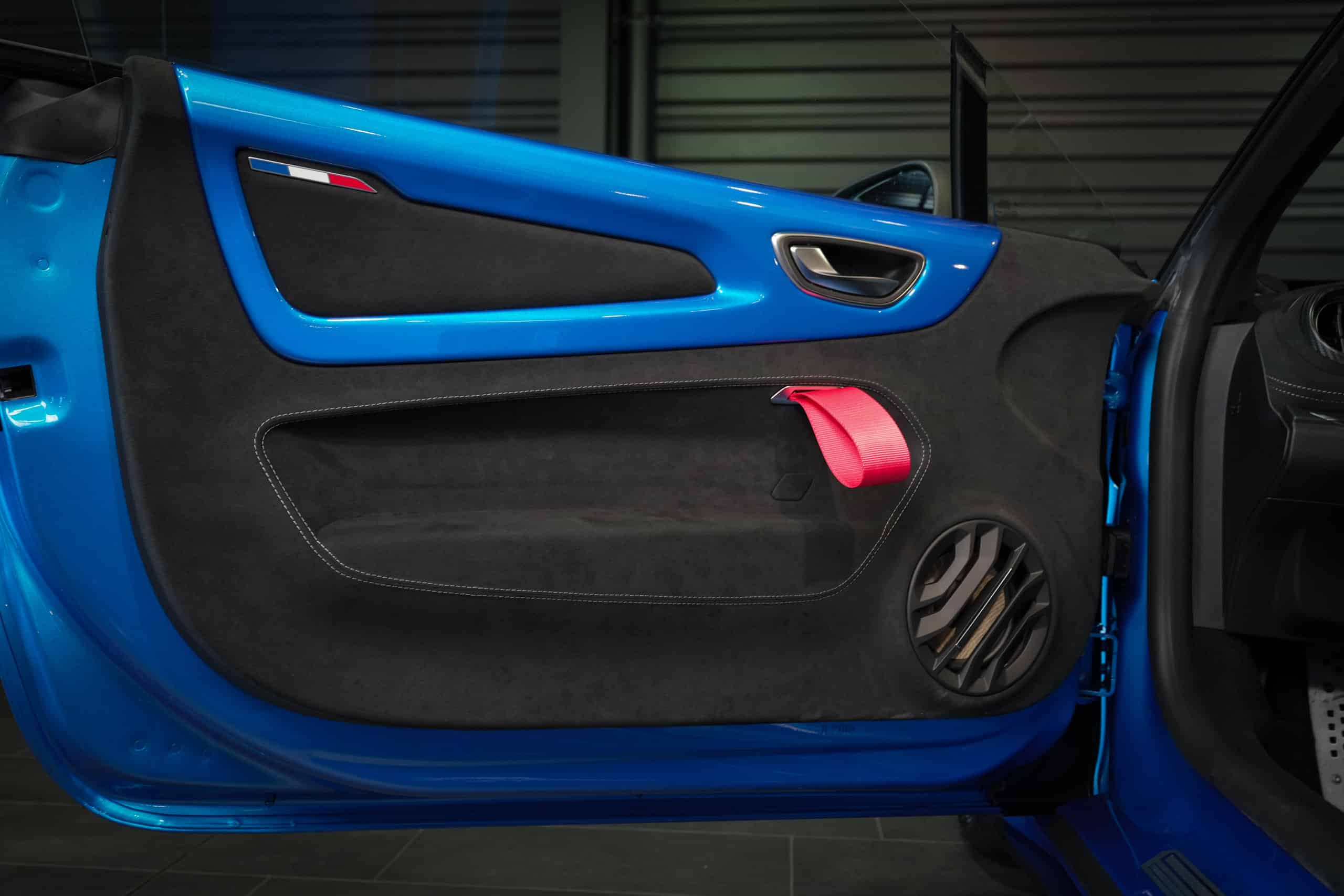 Présentée dans la très désirable teinte Bleu Alpine, cette A110 R incarne la vision la plus radicale et aboutie du modèle : châssis allégé spécifique, carrosserie largement en carbone, suspensions sport réglables, freinage Brembo, pneus Michelin Cup 2 et échappement sport titane. Les sièges baquets carbone Sabelt avec harnais six points soulignent son ADN résolument tourné vers la performance.
