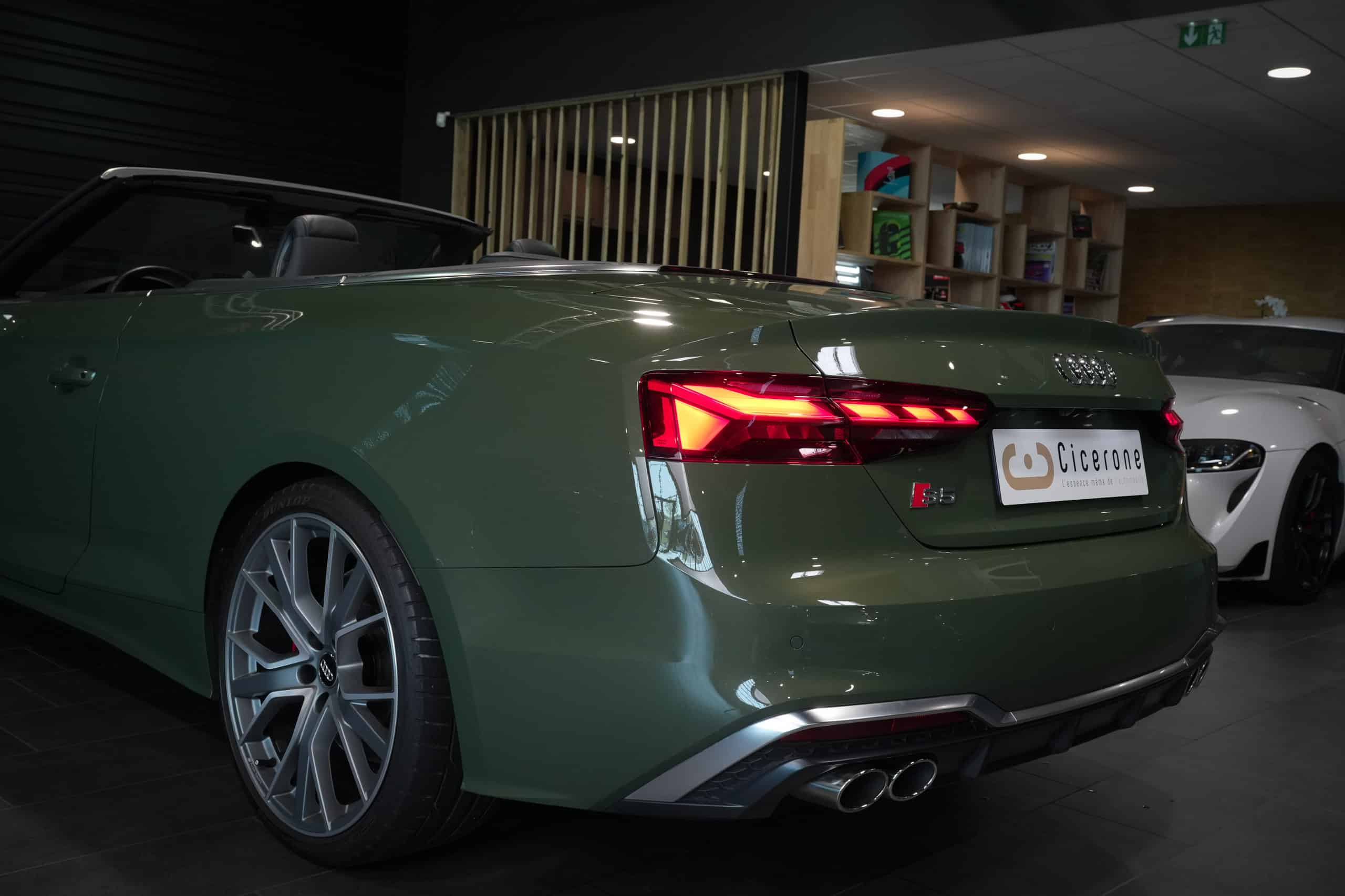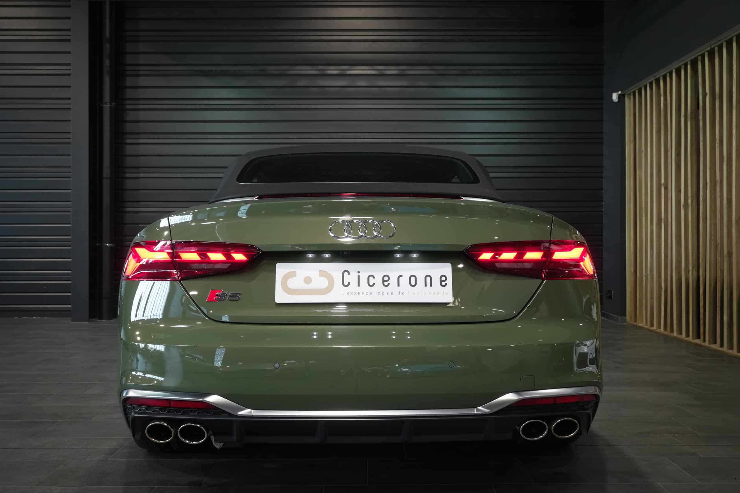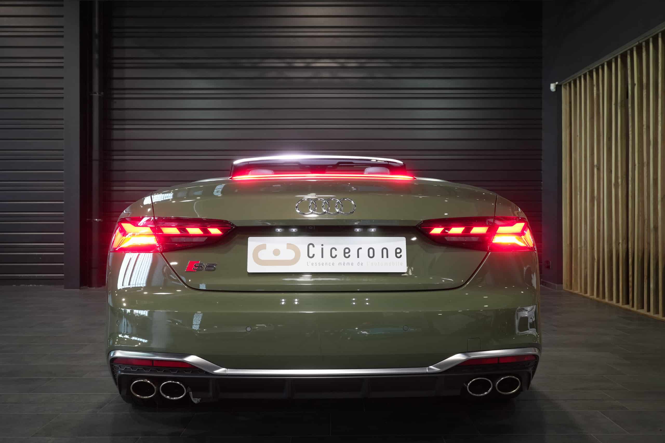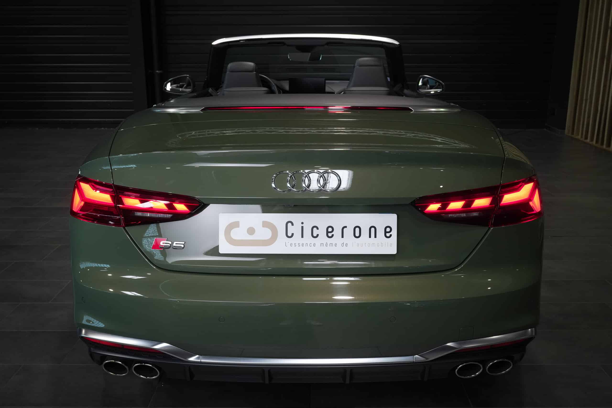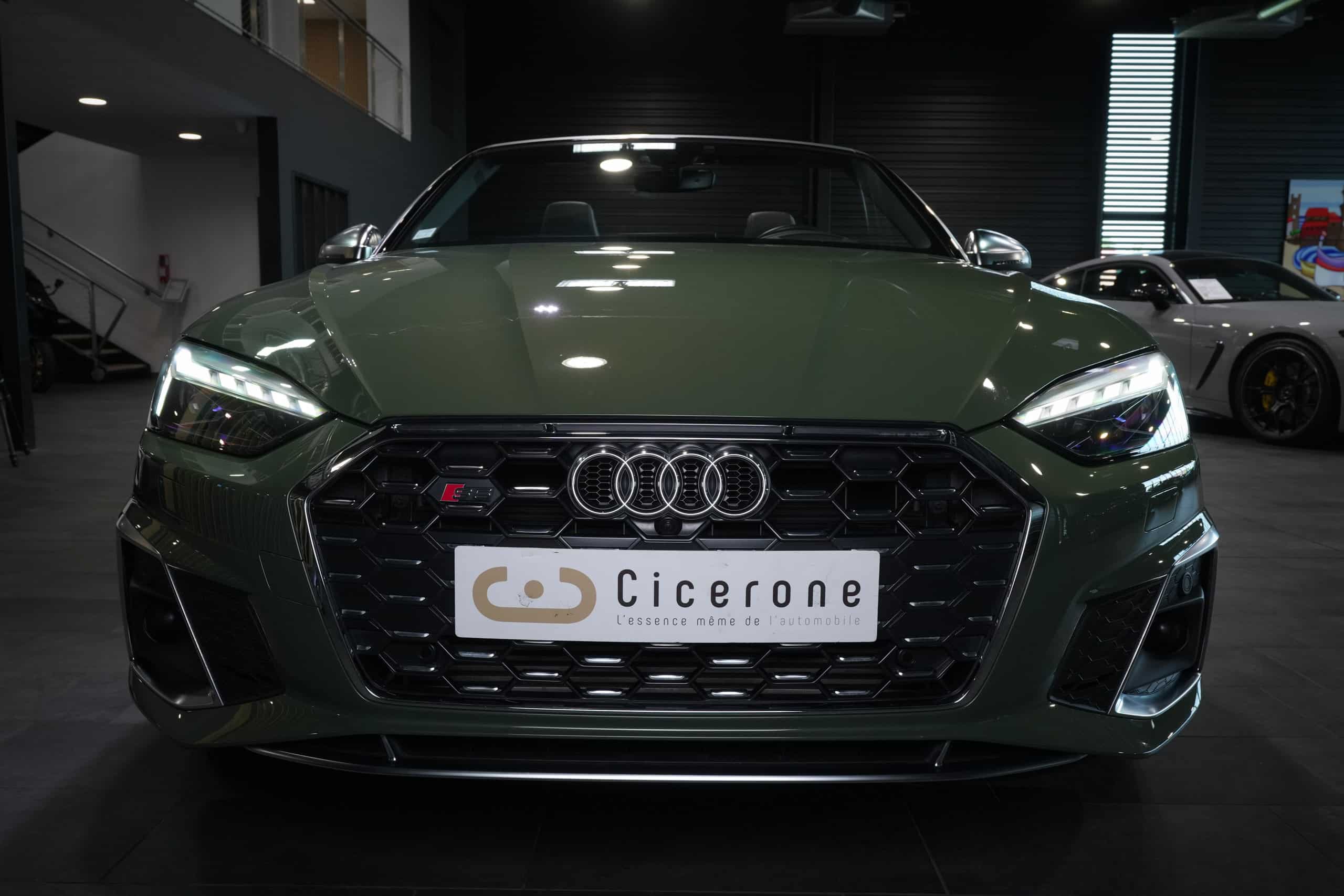 Élégante, performante et parfaitement équipée, cette Audi S5 Cabriolet incarne le parfait équilibre entre sportivité et grand tourisme. Animée par le V6 3.0 TFSI de 354 ch, associé à la transmission intégrale Quattro et à la boîte automatique 8 rapports, elle offre des performances dynamiques tout en conservant un confort de conduite remarquable.