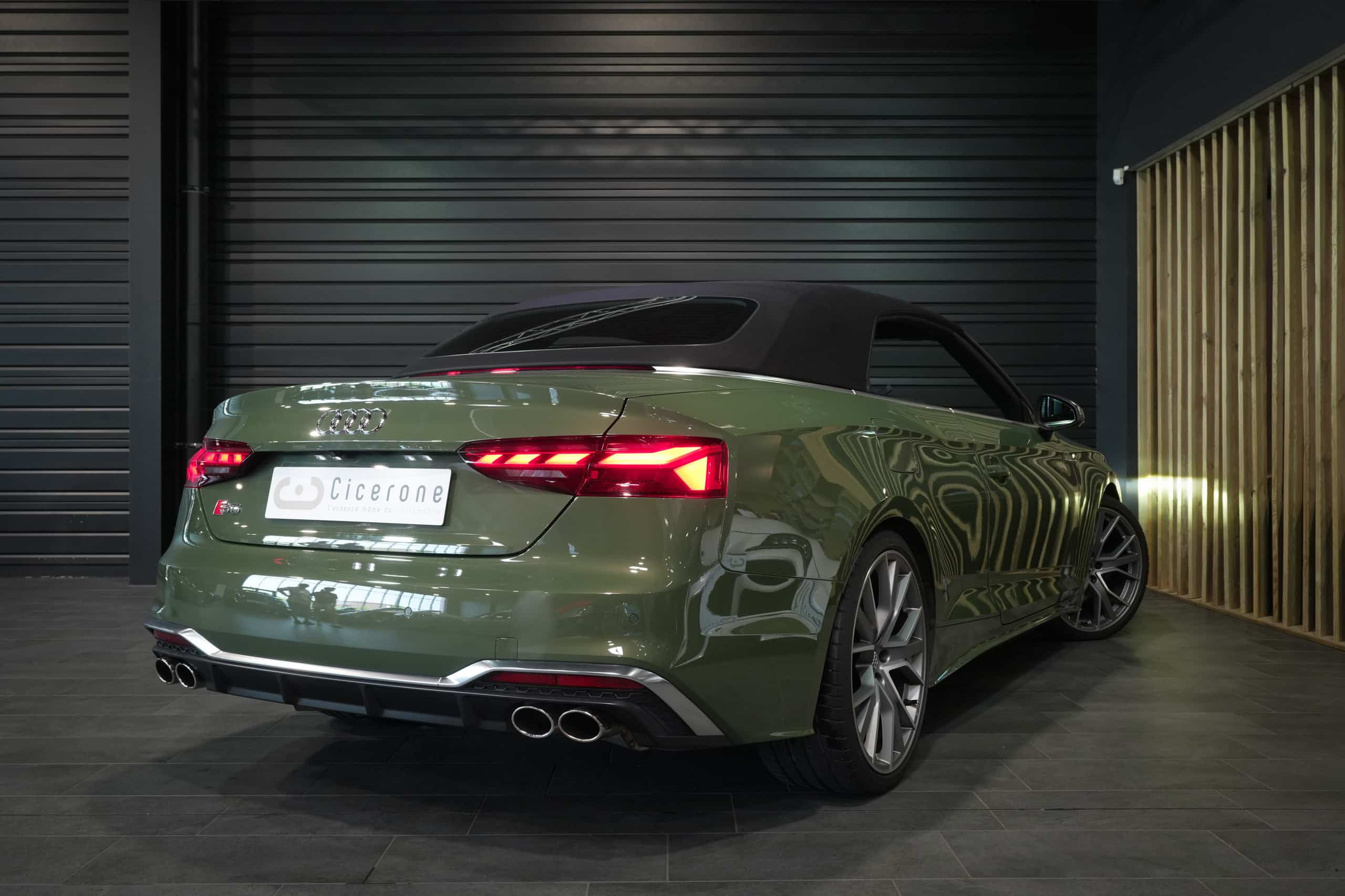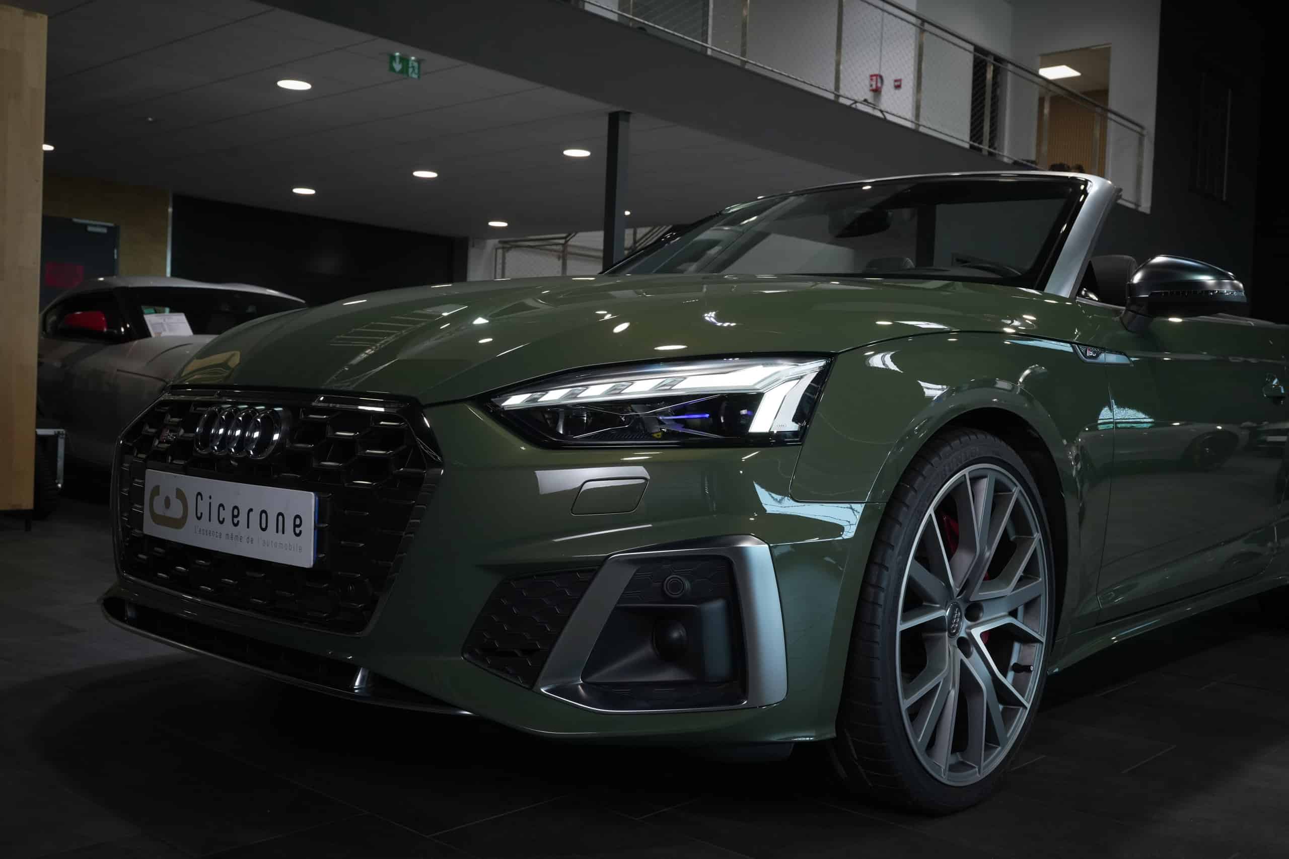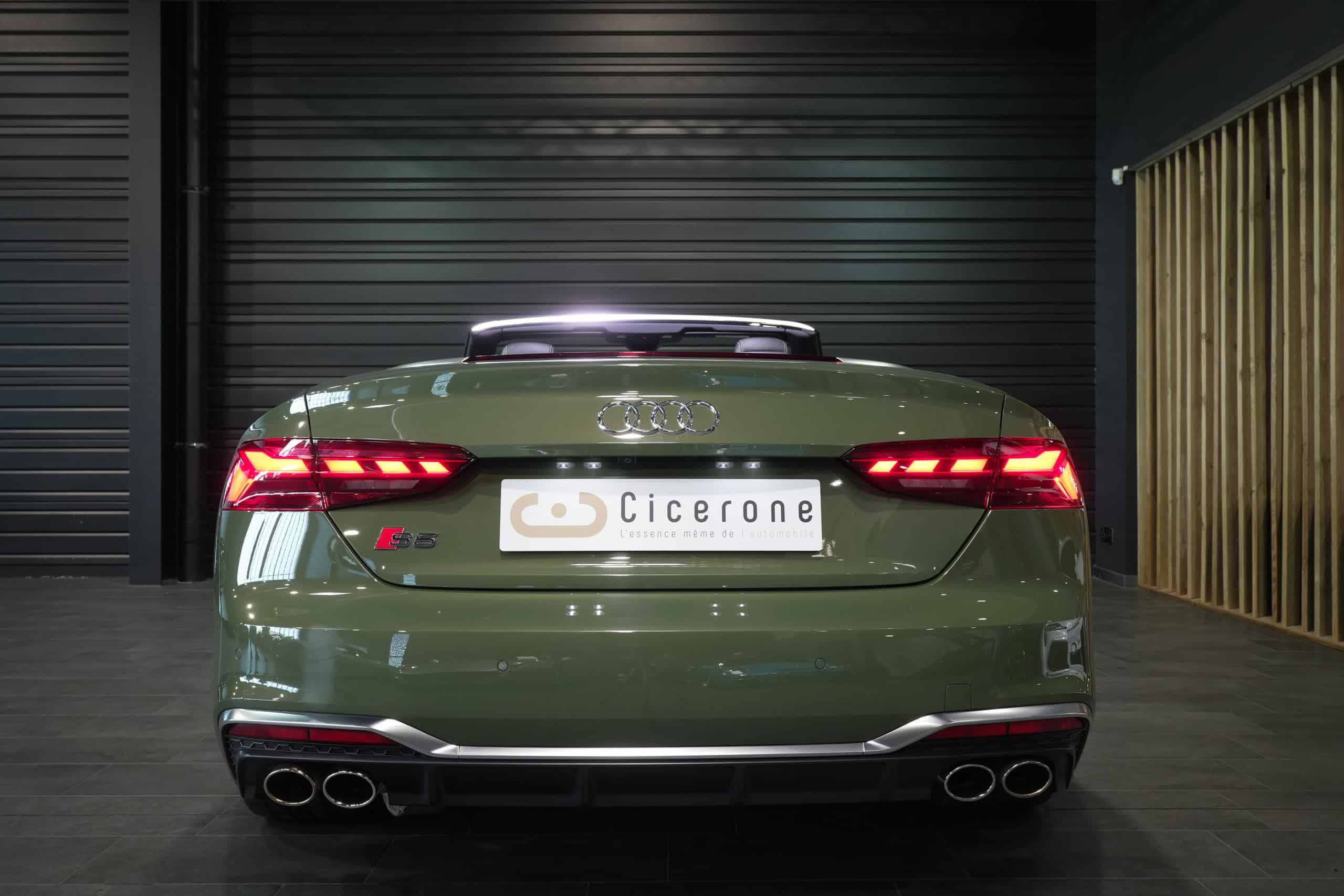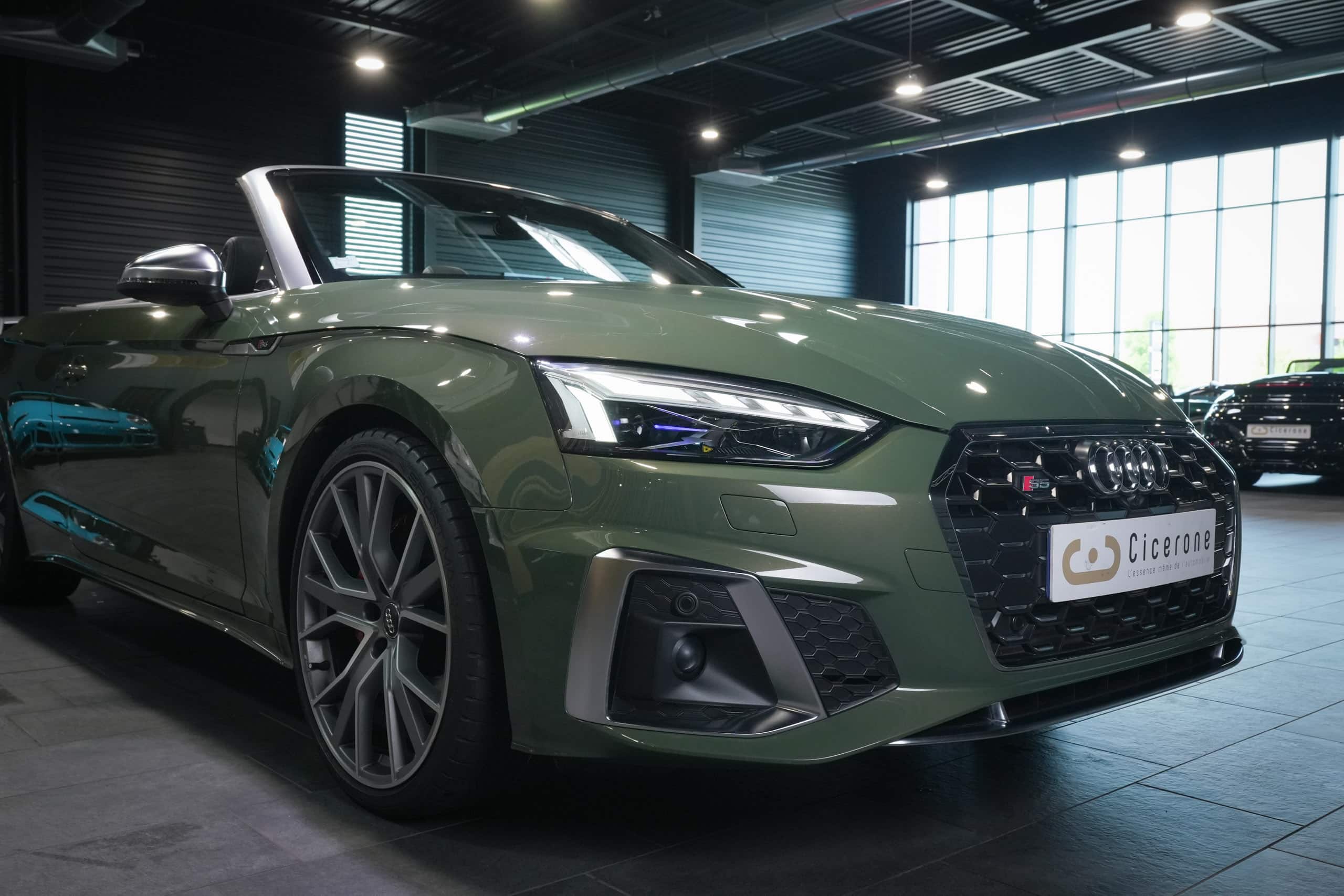 Élégante, performante et parfaitement équipée, cette Audi S5 Cabriolet incarne le parfait équilibre entre sportivité et grand tourisme. Animée par le V6 3.0 TFSI de 354 ch, associé à la transmission intégrale Quattro et à la boîte automatique 8 rapports, elle offre des performances dynamiques tout en conservant un confort de conduite remarquable.
