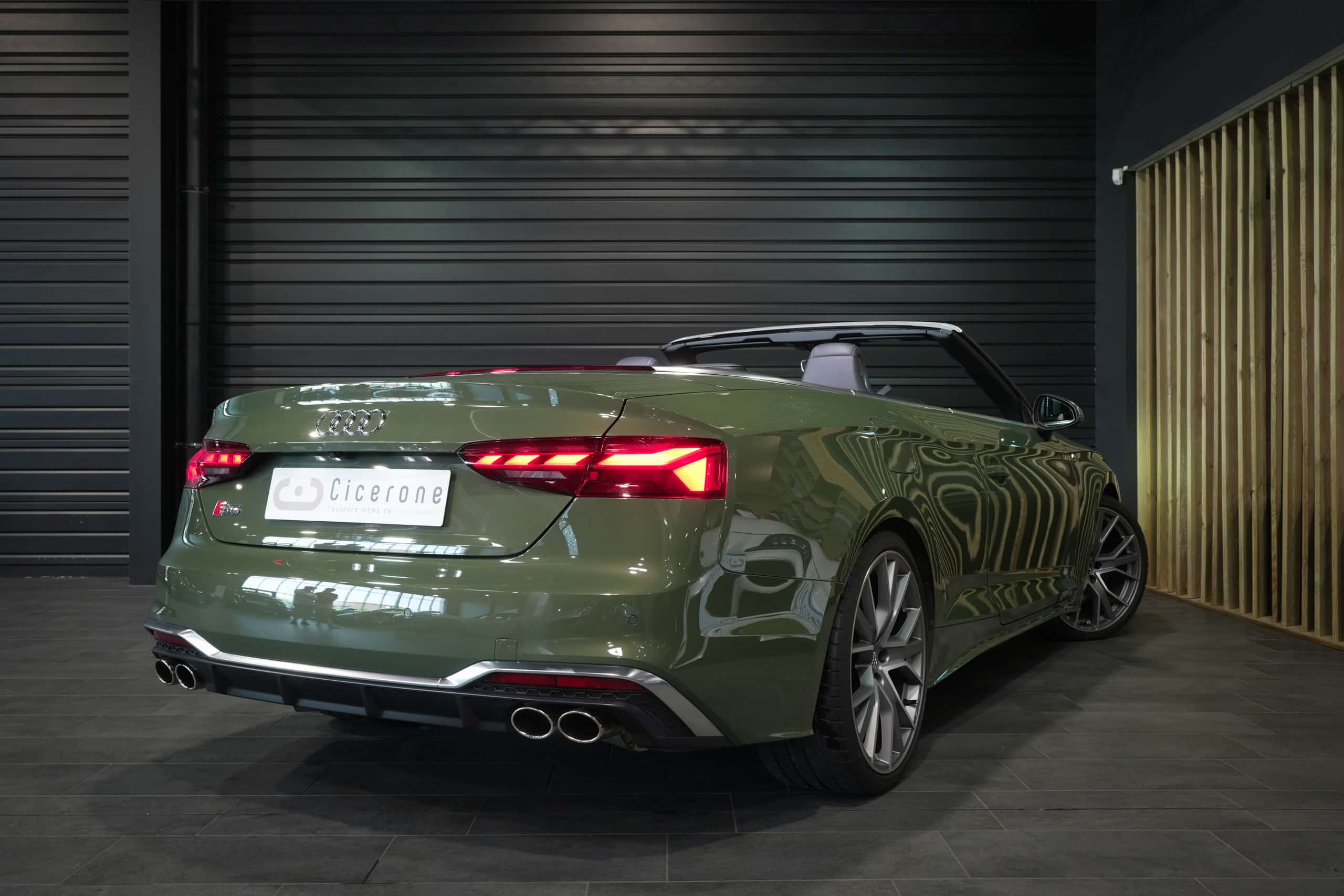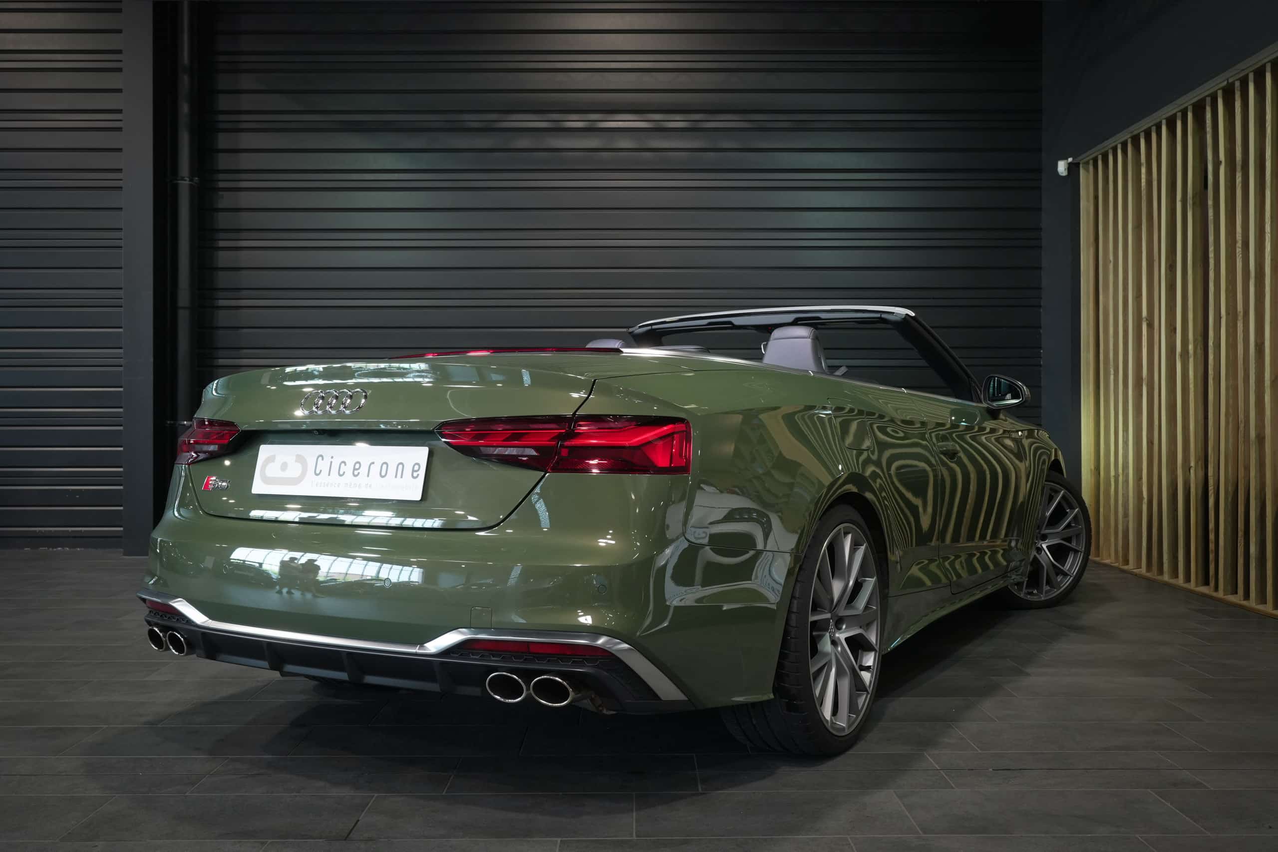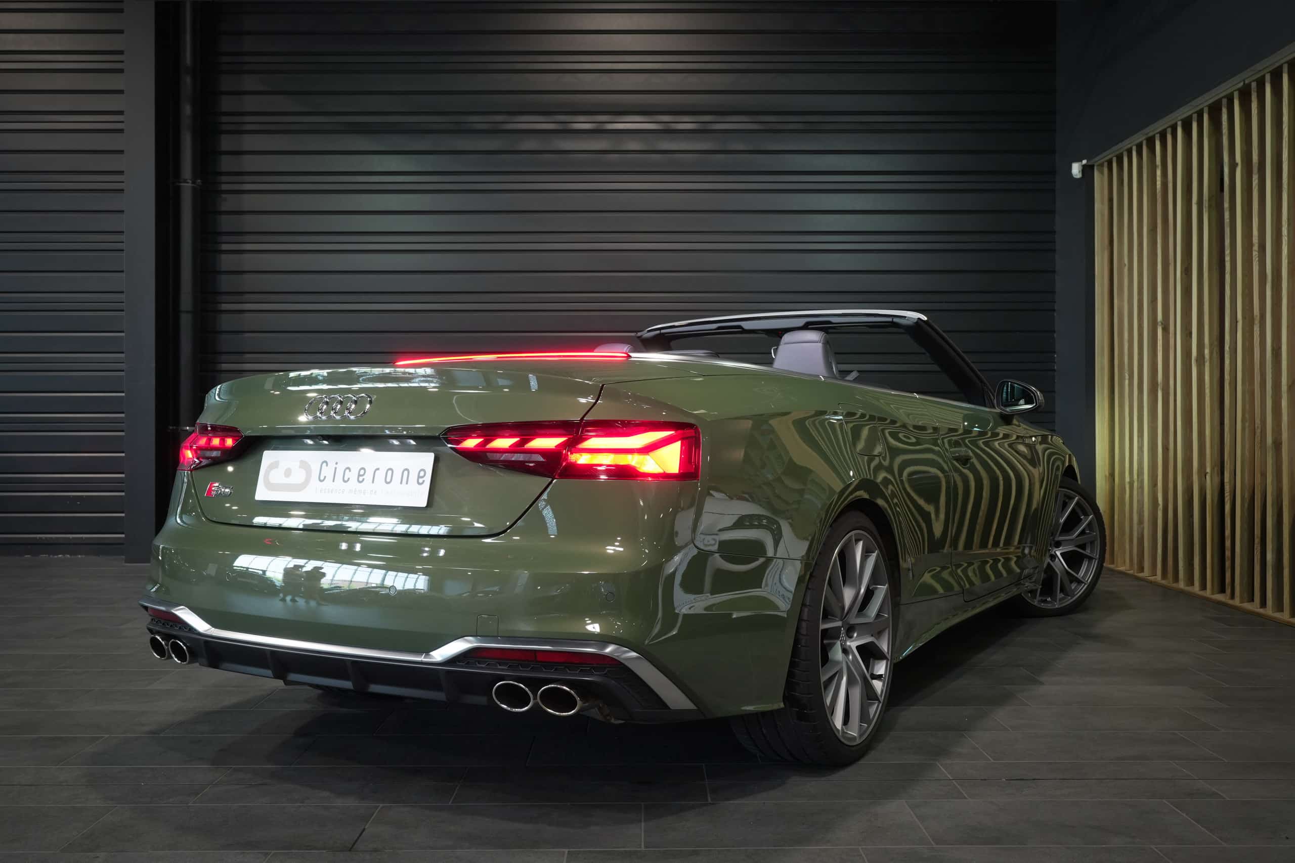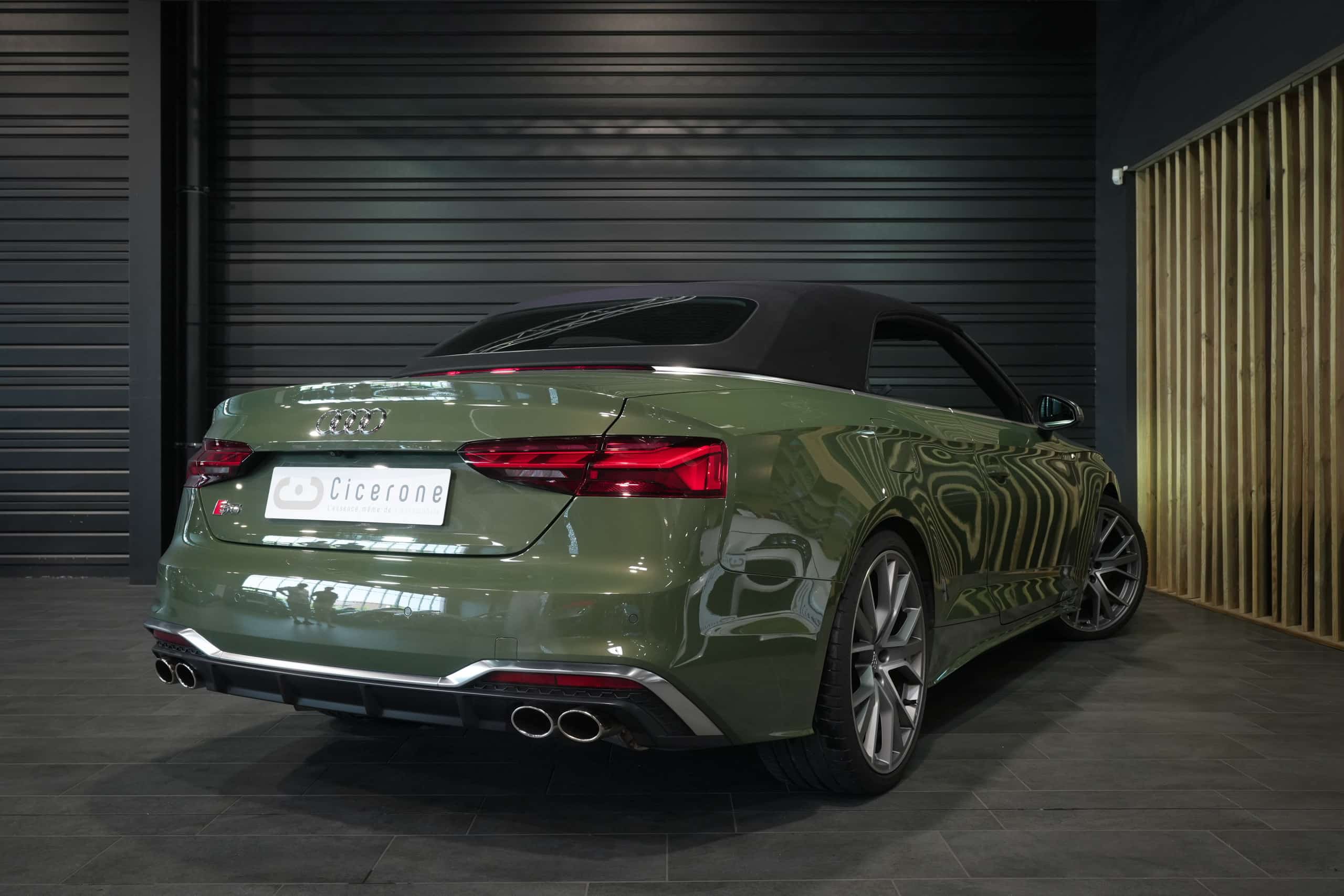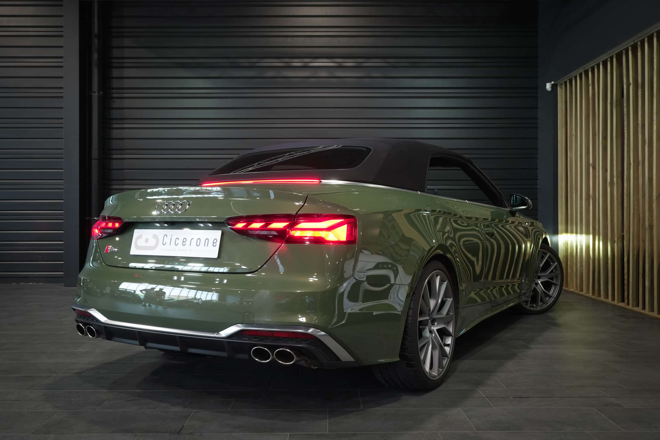 Élégante, performante et parfaitement équipée, cette Audi S5 Cabriolet incarne le parfait équilibre entre sportivité et grand tourisme. Animée par le V6 3.0 TFSI de 354 ch, associé à la transmission intégrale Quattro et à la boîte automatique 8 rapports, elle offre des performances dynamiques tout en conservant un confort de conduite remarquable.